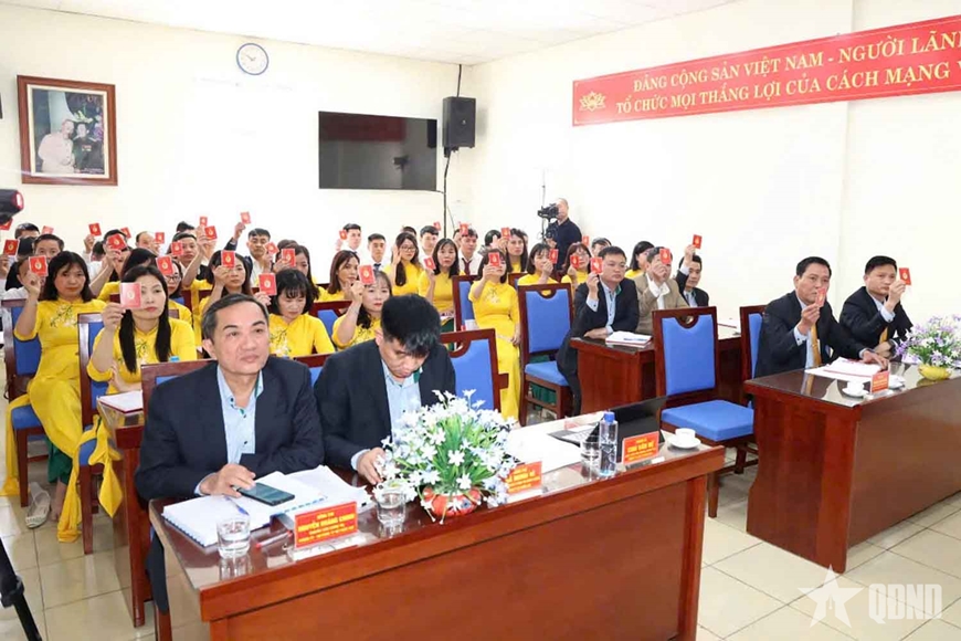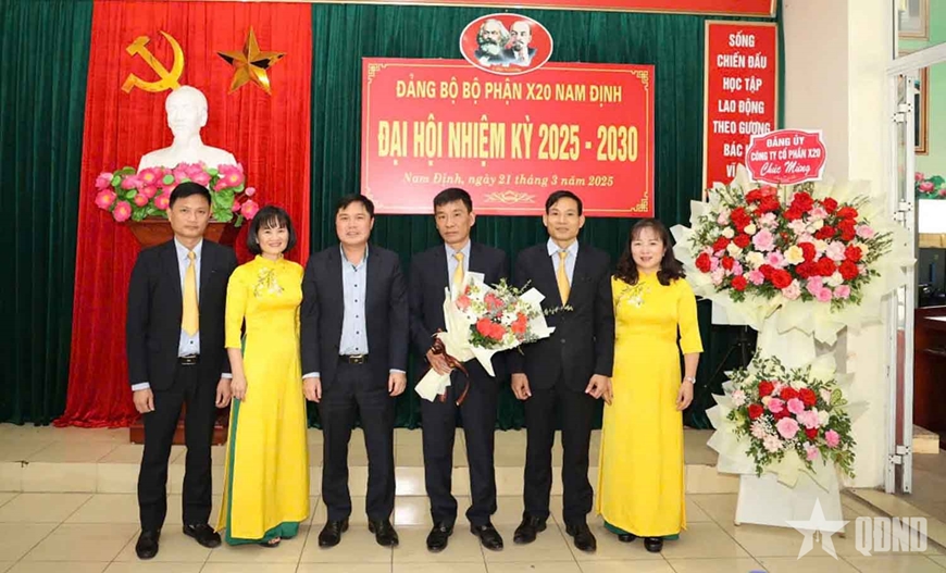 | Ban chấp hành Đảng bộ nhiệm kỳ mới và các đại biểu dự Đại hội đại biểu Đảng bộ Công ty Cổ phần X20 ra mắt đại hội. |
