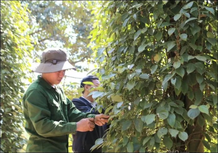 | Người nông dân tỉnh Đắk Nông thu hoạch tiêu. Ảnh: congthuong.vn |