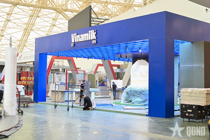 | Các doanh nghiệp tư nhân đang gấp rút hoàn thiện không gian triển lãm. |