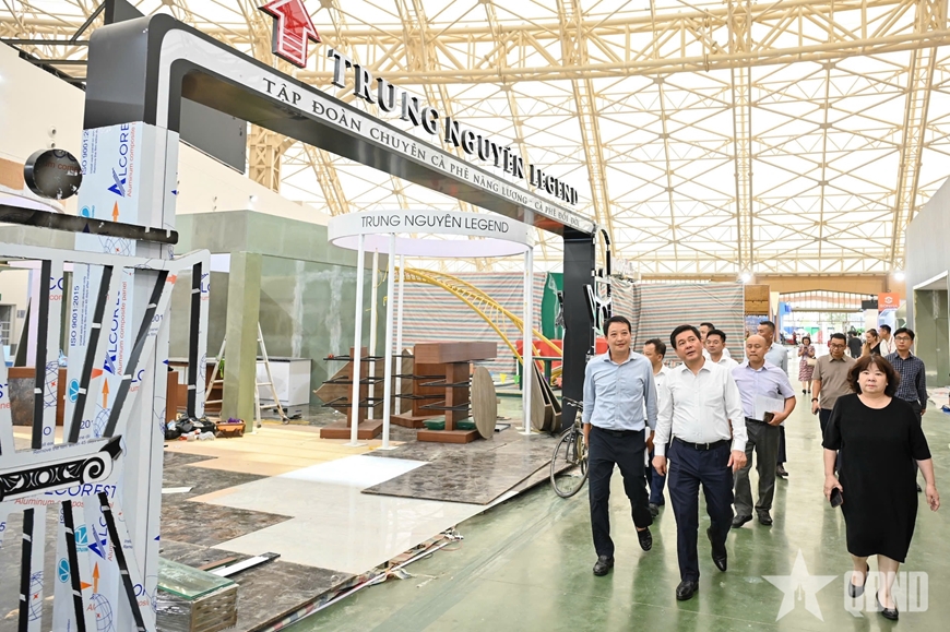 Nhấn mạnh thời gian còn lại không nhiều, Bộ trưởng yêu cầu các đơn vị khẩn trương hoàn thiện các hạng mục, đặc biệt chú trọng yếu tố an toàn trong quá trình thi công và suốt thời gian diễn ra triển lãm.