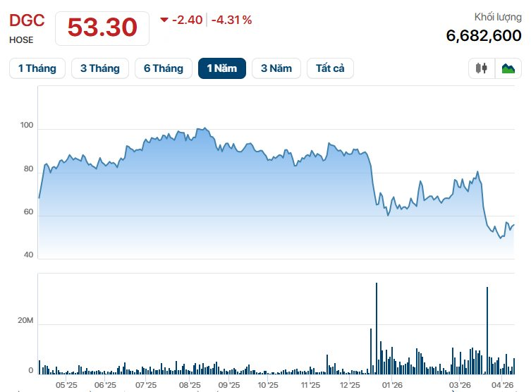 Trên thị trường, cổ phiếu DGC chốt phiên 8/4 đạt 55.700 đồng/cp.