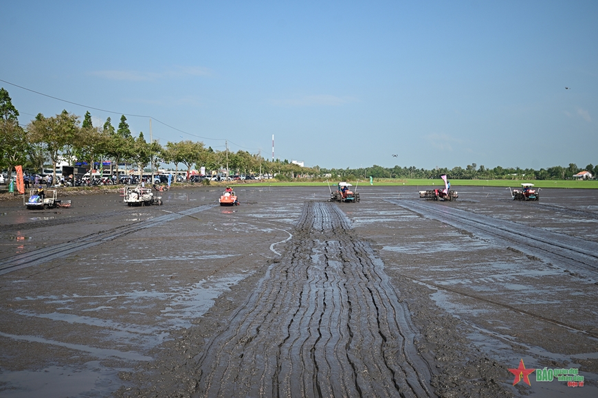 | Trình diễn gieo sạ bằng máy tại lễ phát động. |