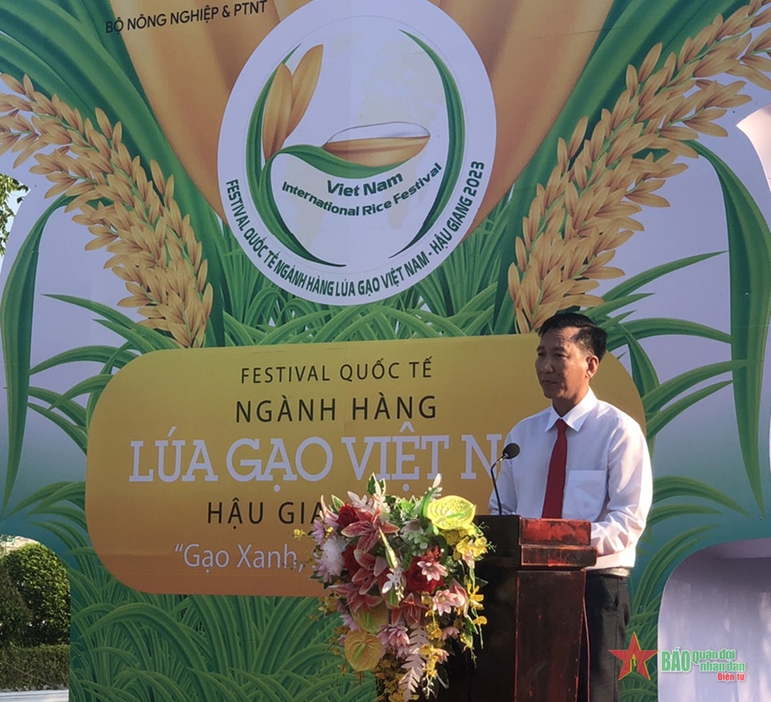 | Ông Ngô Minh Long, Giám đốc Sở Nông nghiệp và Phát triển nông thôn Hậu Giang phát biểu tại sự kiện. |