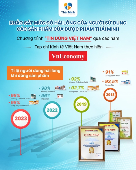 | Mức độ hài lòng của người sử dụng các sản phẩm của Dược phẩm Thái Minh luôn đạt mức từ 91-98% (khảo sát do Tạp chí Kinh tế Việt Nam thực hiện). |