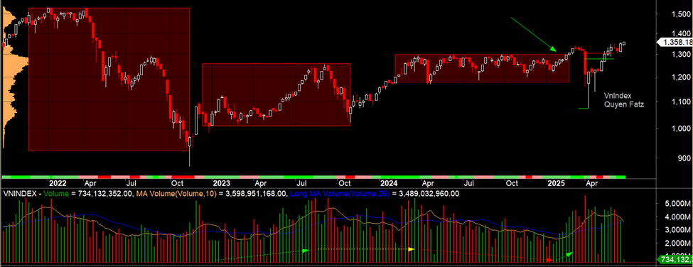 Đến nay, VnIndex đã vượt qua mốc 1.358 điểm – mức cao nhất trong ba năm qua – bất chấp những rủi ro tiềm ẩn từ căng thẳng thuế quan và điểm nóng địa chính trị tại Trung Đông.