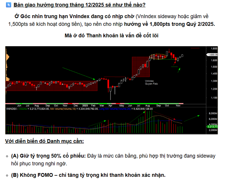o (A) Giữ tỷ trọng 50% cổ phiếu: Đây là mức cân bằng, phù hợp thị trường đang sideway hồi phục trong nghi ngờ.