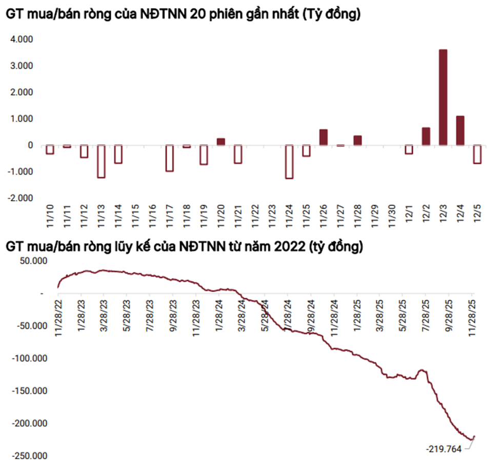 NĐTNN quay lại mua ròng trong tuần đầu tiên của tháng 12/2025 sau đà bán ròng từ 2023- nay