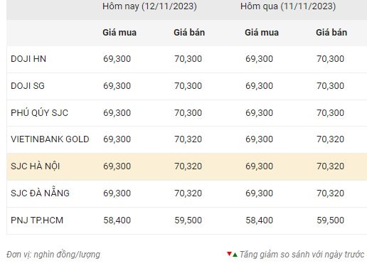 * Như vậy, giá vàng SJC trong nước chiều nay (12-11) duy trì ổn định so với hôm qua, giá bán vàng DOJI, SJC bán ra quanh mức 70,300 triệu đồng/lượng.