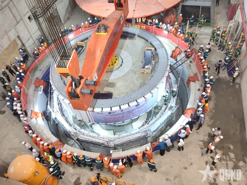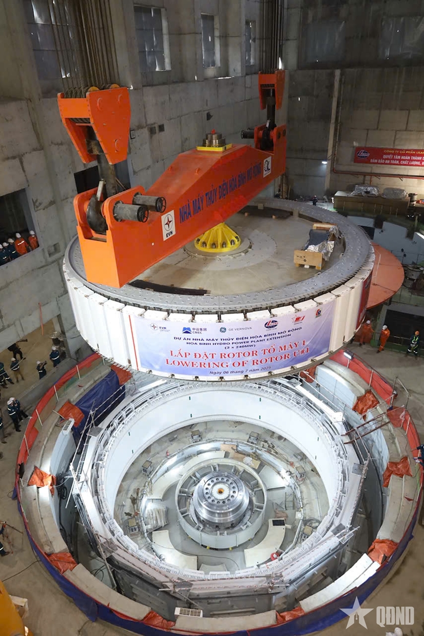 Rotor tổ máy số 1 dự án thủy điện Hòa Bình mở rộng có trọng lượng khoảng 585 tấn, là phần quay của máy phát. Quá trình hạ đặt thành công vào Stator tổ máy phải đảm bảo các yêu cầu kỹ thuật với độ chính xác cao. Việc hạ đặt Rotor là một bước bản lề quan trọng trong chuỗi các công đoạn lắp đặt tổ máy, đòi hỏi sự phối hợp đồng bộ, chính xác giữa các đơn vị thi công, giám sát và lắp đặt thiết bị cơ điện. Thành công của hạng mục này thể hiện quyết tâm và nỗ lực lớn của EVN, Ban QLDA Điện 1 và các nhà thầu trong điều kiện thi công khó khăn, phức tạp.