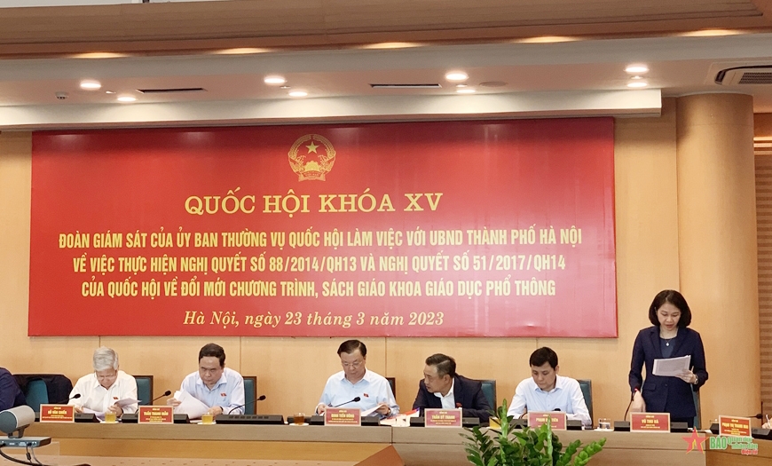Phát biểu tại buổi làm việc, Phó chủ tịch Quốc hội Trần Thanh Mẫn cho biết, đầu tư cho giáo dục, đầu tư cho khoa học công nghệ là đầu tư cho sự phát triển. Đối với đất nước chúng ta, Đảng, Nhà nước, lãnh đạo các tỉnh, thành phố đều quan tâm cho sự nghiệp giáo dục, đào tạo. Xuất phát từ ý nghĩa tầm quan trọng đó, Quốc hội khóa XIII đã ban hành Nghị quyết số 88/2014/QH13 về đổi mới chương trình, sách giáo khoa giáo dục phổ thông nhằm thể chế hóa chủ trương của Đảng, Nhà nước. Sau gần 10 năm thực hiện Nghị quyết số 88/2014/QH13 và Chương trình giáo dục phổ thông 2018, với nỗ lực cố gắng của cả hệ thống chính trị, người dân cũng như toàn ngành, việc thực hiện Nghị quyết số 88/2014/QH13 đã đạt những kết quả bước đầu theo đúng mục tiêu đề ra. Tuy nhiên quá trình thực tế triển khai vẫn còn những khó khăn, bất cập.