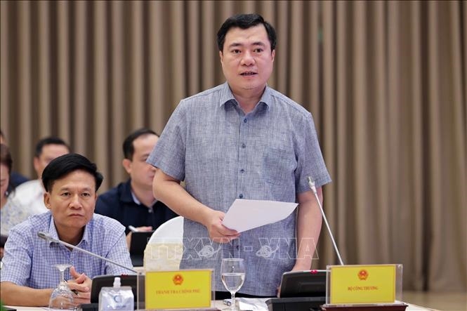 | Thứ trưởng Bộ Công Thương Nguyễn Sinh Nhật Tân trả lời câu hỏi của phóng viên cơ quan thông tấn, báo chí. |