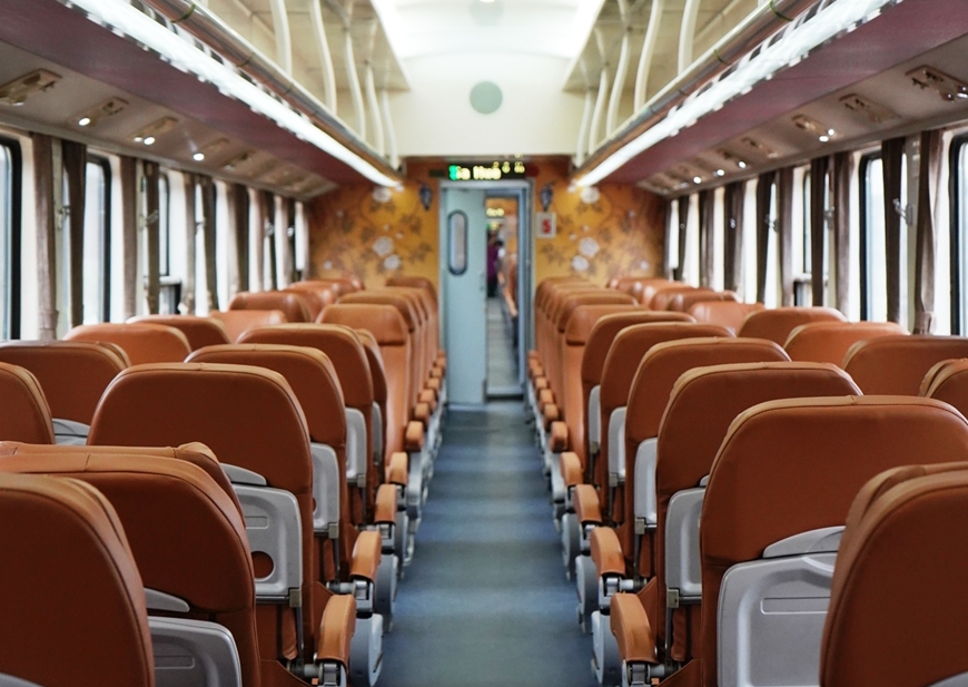| Bên trong toa tàu của đoàn tàu chạy tuyến Huế – Đà Nẵng. |