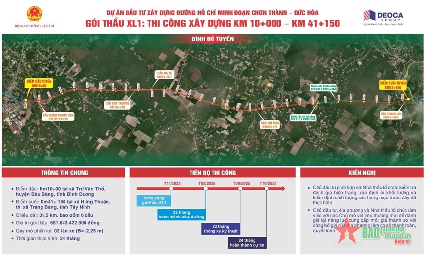 Tập đoàn Đèo Cả là nhà thầu thực hiện gói XL1 – Thi công xây dựng đoạn Km10+000 – Km41+150 (bao gồm cầu Kênh Phước Hòa, cầu Cây Trường, cầu Bà Tứ, cầu Thị Tính, cầu Suối Tre, cầu Thanh An) thuộc Dự án Đầu tư xây dựng đường Hồ Chí Minh, đoạn Chơn Thành – Đức Hòa. Gói thầu có giá trị xây lắp hơn 681 tỷ đồng, thời gian thực hiện hợp đồng là 730 ngày.