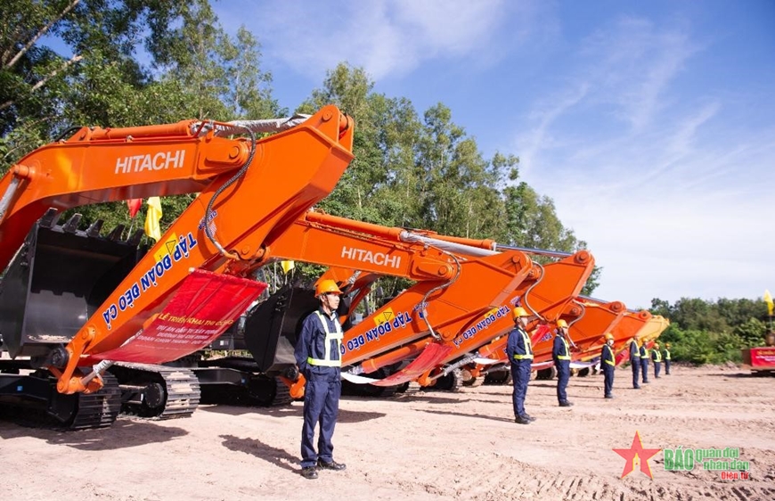 | Lực lượng, phương tiện của nhà thầu triển khai thi công công trình ngay sau buổi lễ |