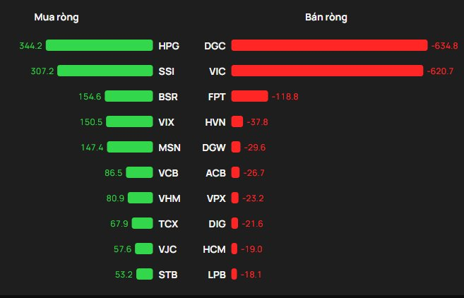 Ngược lại, DGC là cổ phiếu khối ngoại bán mạnh nhất với 634 tỷ đồng. Theo sau, các cổ phiếu VIC và FPT cũng bị “xả” 620 tỷ đồng và 119 tỷ đồng.