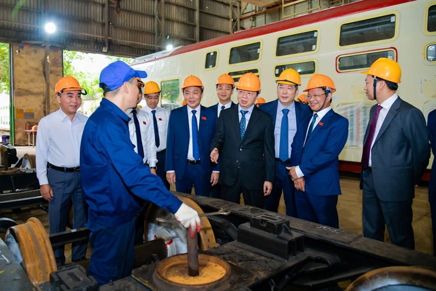 | Phó thủ tướng Trần Hồng Hà kiểm tra hoạt động sản xuất tại Công ty cổ phần Xe lửa Gia Lâm. |