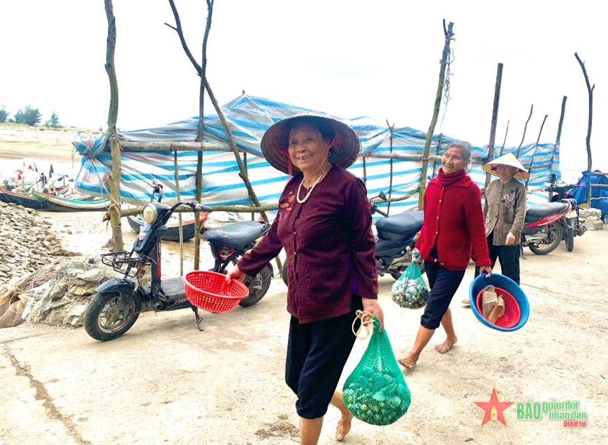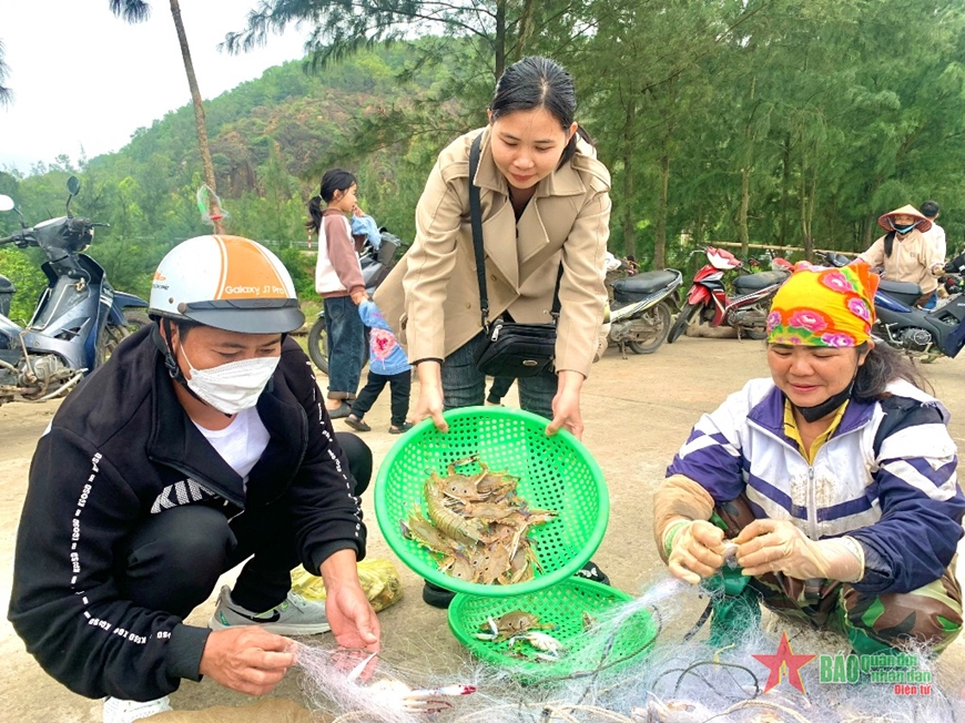 Rất đông người dân xuống tại bờ biển để mua hải sản.