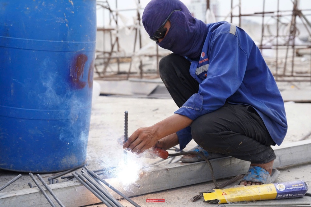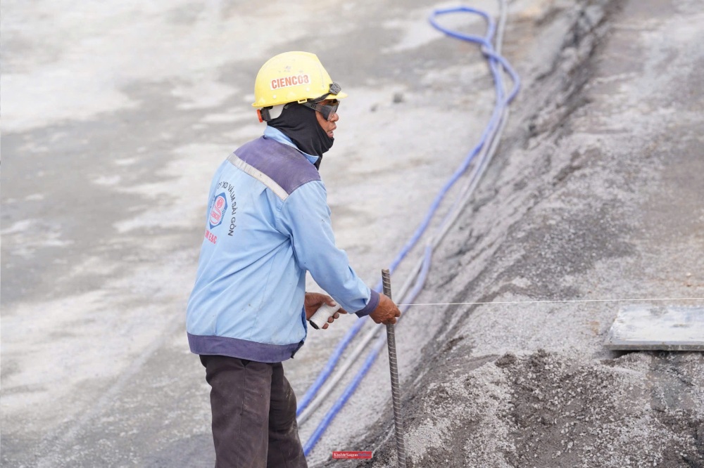“Thời gian qua, công trình duy trì thi công liên tục, từ nắng gắt ban ngày đến ánh đèn ban đêm. Hiện nay, công nhân làm việc từ sáng đến hơn 22 giờ mỗi ngày để kịp tiến độ”, đại diện nhà thầu cho biết.