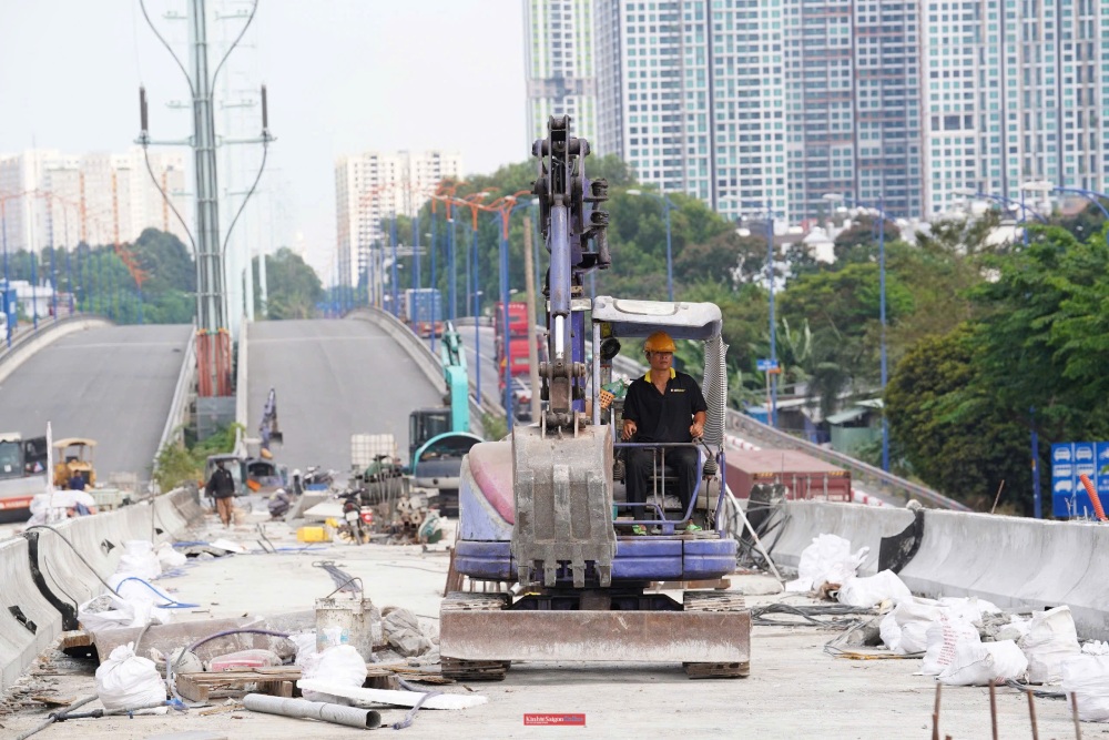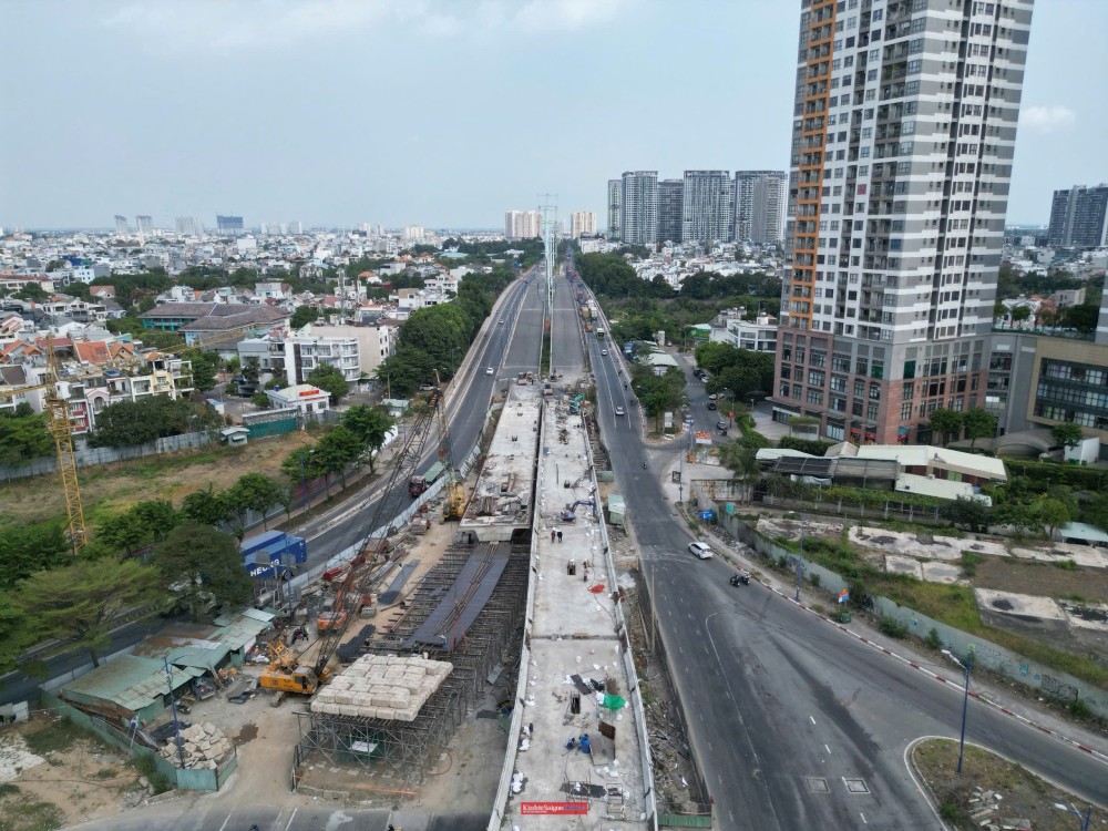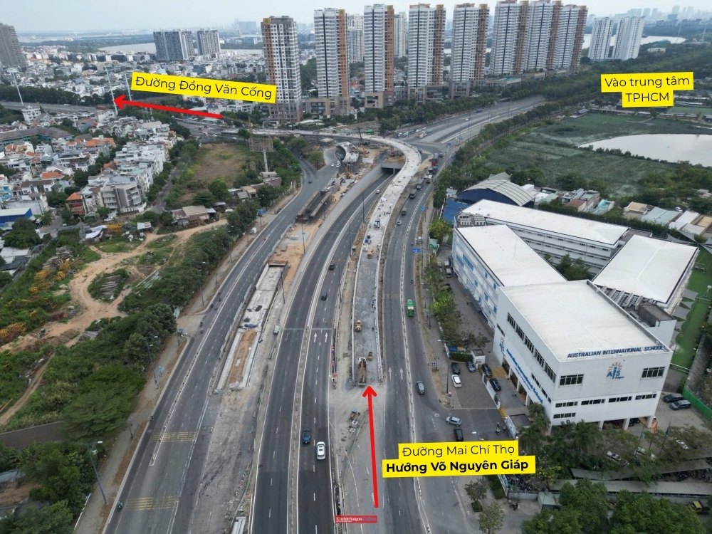 Song song đó, nhánh cầu N4 (hướng từ Đồng Văn Cống ra Mai Chí Thọ) cũng đang được đẩy nhanh thi công phần nhịp dẫn, dự kiến hoàn thành vào cuối tháng 6-2026.