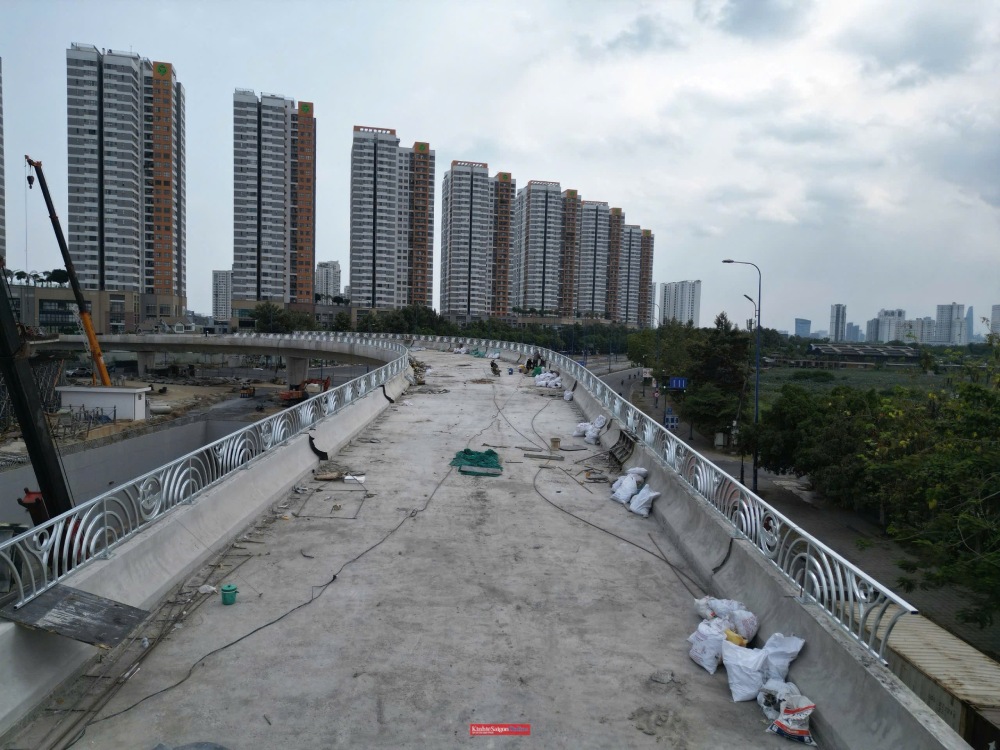 Các hạng mục còn lại chủ yếu gồm lắp đặt lan can, bó vỉa, vệ sinh mặt cầu và kiểm tra kỹ thuật tổng thể… trước khi đưa vào khai thác.