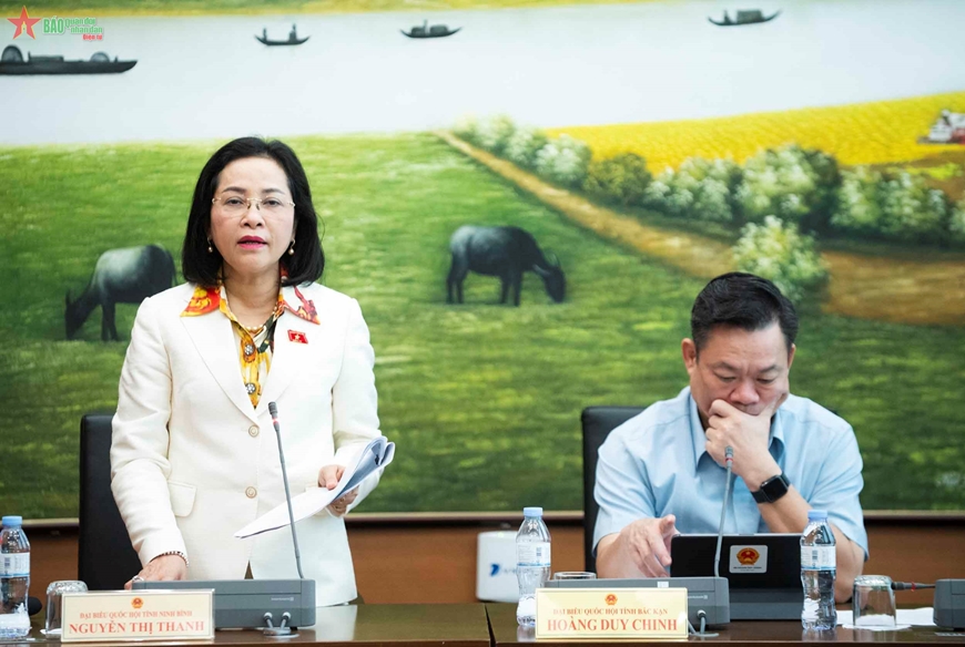 | Phó chủ tịch Quốc hội Nguyễn Thị Thanh phát biểu tại phiên họp tổ. |