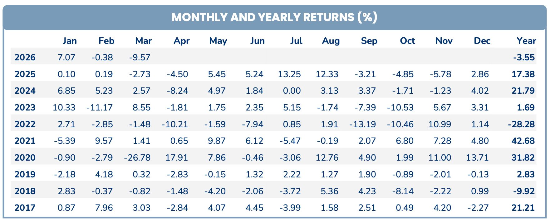 Theo báo cáo tháng 3, PYN Elite Fund ghi nhận hiệu suất âm 9,6% trong tháng, khả quan hơn mức giảm 11% của VN-Index. Tính từ đầu năm, hiệu suất quỹ ở mức âm 3,55%. Diễn biến này phản ánh bối cảnh thị trường chứng khoán Việt Nam trải qua nhịp điều chỉnh mạnh trong tháng 3, chủ yếu do các yếu tố bên ngoài liên quan đến địa chính trị và lo ngại về nguồn cung năng lượng.
