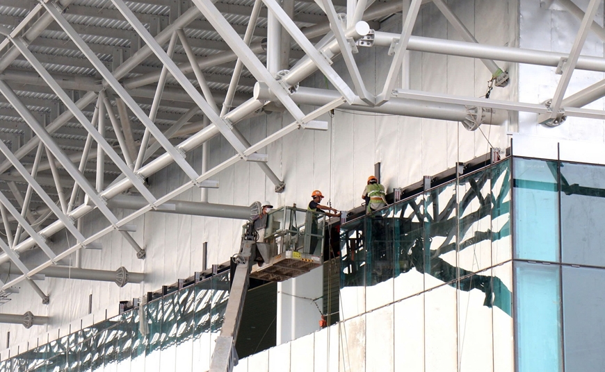 | Công nhân thi công hoàn thiện các hạng mục Dự án Nhà ga T3 Sân bay Tân Sơn Nhất. |