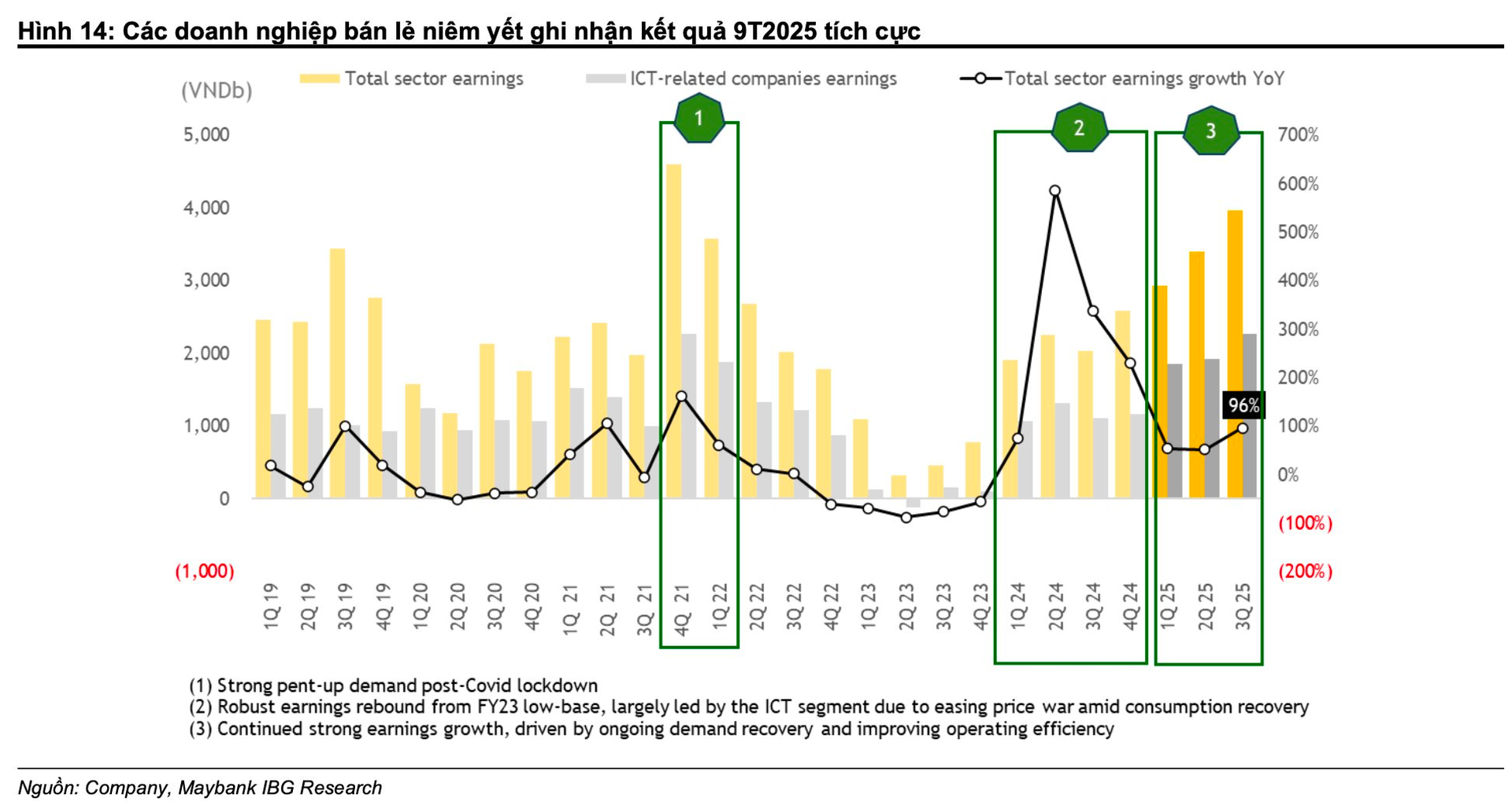 Kết quả trên một lần nữa khẳng định khả năng duy trì lợi nhuận của toàn ngành, khi tất cả các doanh nghiệp lớn đều vượt kỳ vọng, bất chấp đà phục hồi của nhu cầu tiêu dùng vẫn diễn ra từ từ. MSVN dự báo lợi nhuận toàn ngành sẽ duy trì ở mức cao, với tăng trưởng năm 2025/2026 ước tính ở mức 55%/26% so với cùng kỳ.