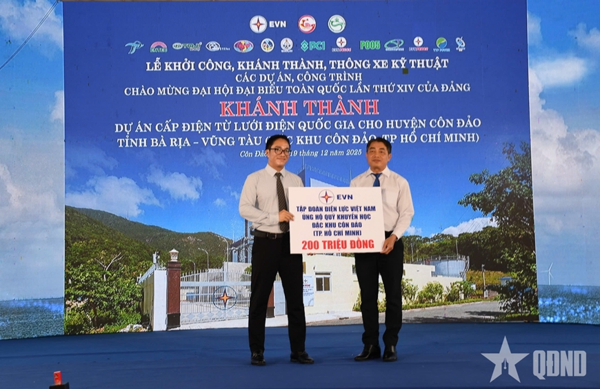 Cũng nhân dịp này, EVN và đại diện liên danh nhà thầu còn trao tặng phần quà an sinh xã hội cho Quỹ khuyến học của đặc khu Côn Đảo với tổng giá trị là 500.000.000 đồng.