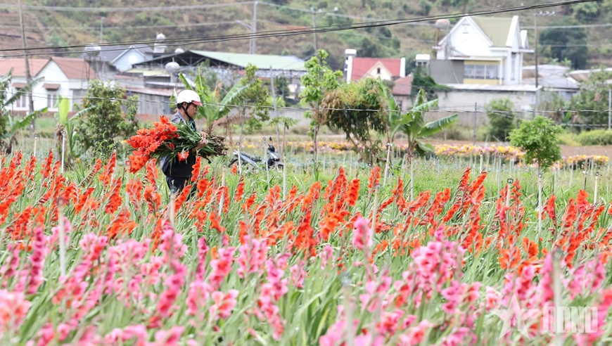 Ngày 27-2, có mặt cánh đồng của thôn K’Long, xã Hiệp Thạnh, tỉnh Lâm Đồng, trước mắt chúng tôi là những ruộng hoa lay ơn bạt ngàn, nở rộ. Mọi năm, những ruộng hoa này đã được thu hoạch từ trước Tết Nguyên đán và người dân đã trồng vụ hoa mới. Tuy nhiên, năm nay, những ruộng hoa này lại bị bỏ mặc, bung nở đầy đồng.