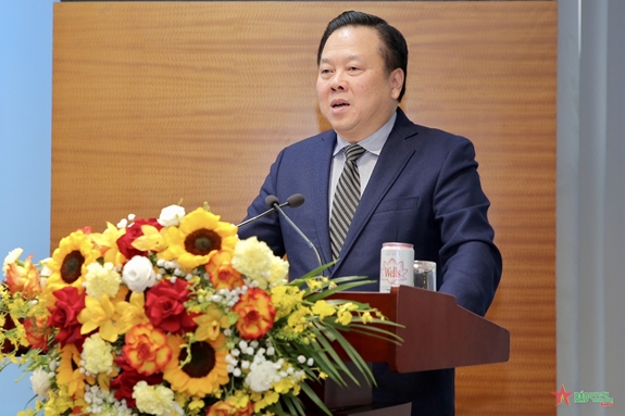 | Chủ tịch Ủy ban Quản lý vốn Nhà nước tại doanh nghiệp Nguyễn Hoàng Anh chúc mừng Petrovietnam đã kiện toàn nhân sự lãnh đạo chủ chốt. |