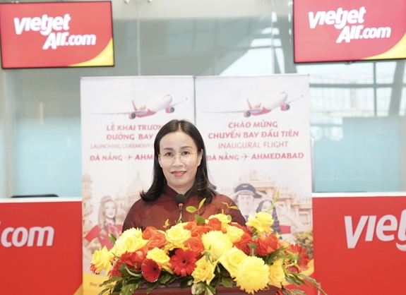 Bà Nguyễn Thị Anh Thi, Phó chủ tịch UBND Thành phố Đà Nẵng chúc mừng Vietjet khai trương đường bay Đà Nẵng – Ahmedabad. |