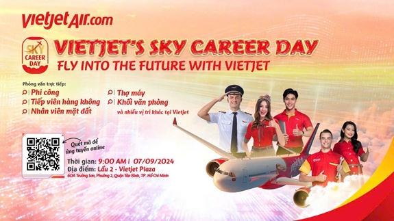 Ngày hội tuyển dụng – Vietjet Sky Career Day diễn ra ngày 7-9 tại Vietjet Plaza – 60A Trường Sơn, Phường 2, quận Tân Bình, Thành phố Hồ Chí Minh. Sự kiện dự kiến thu hút gần 1.000 ứng viên tiềm năng đến từ Việt Nam và các nước, ngày hội tuyển dụng cũng có sự tham gia của các phi công, tiếp viên hàng không như Cơ phó Võ Hồng Hạnh, Cơ phó Bùi Thanh Hà (Hacoi), Tiếp viên trưởng Hoàng Minh Quý…