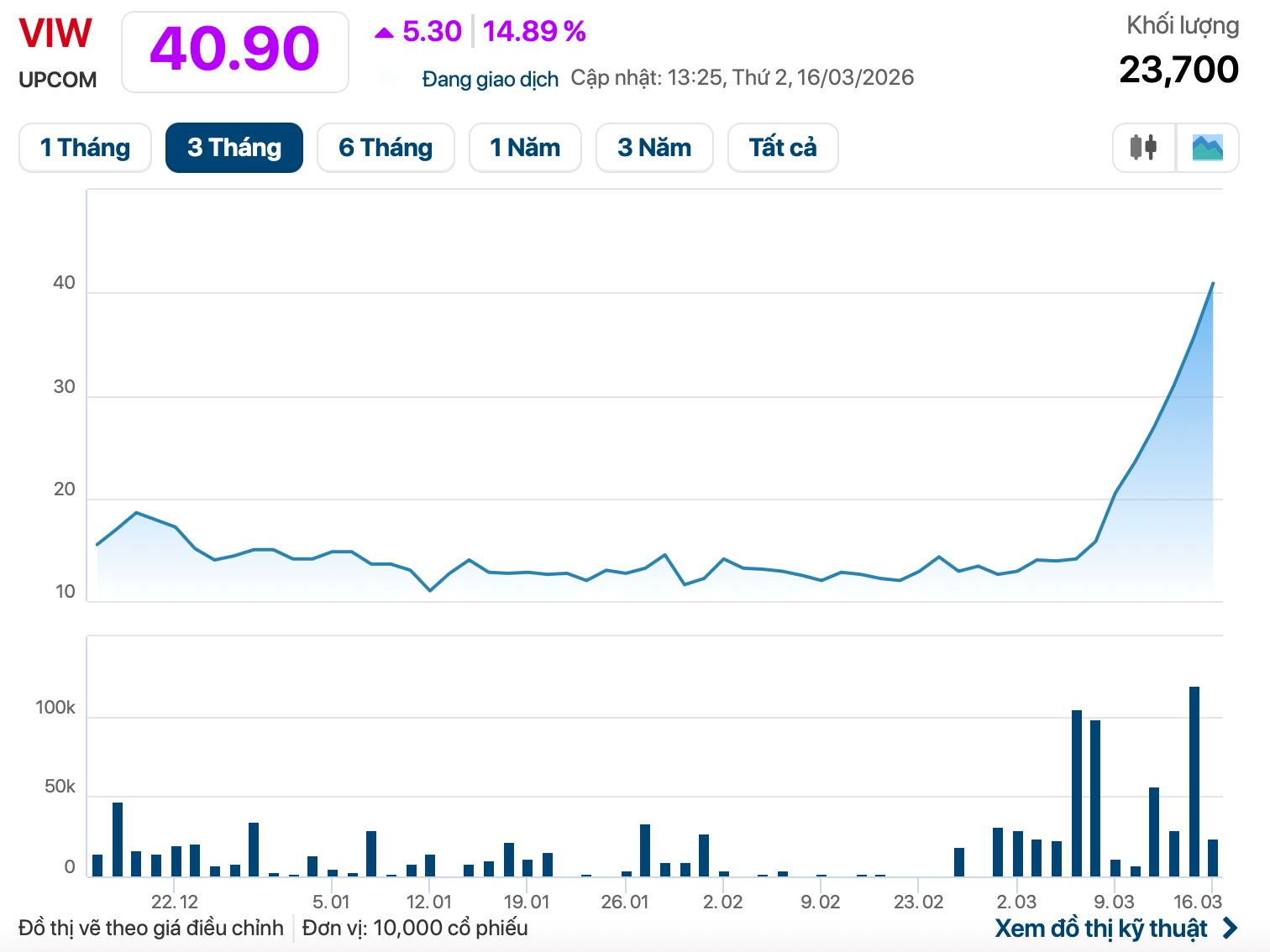 Trên sàn chứng khoán, cổ phiếu VIW đã tăng trần 7 phiên liên tiếp lên hơn 40.000 đồng/cổ phiếu, tương đương mức tăng gần 3 lần chỉ trong thời gian ngắn. Tạm tính tại mức thị giá hiện tại, Vinaconex có thể thu về khoảng 400 tỷ đồng từ giao dịch trên.